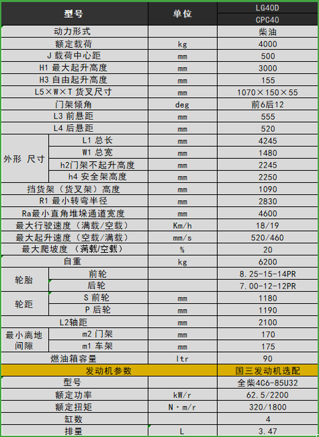 •采用锡柴CA4DX23柴油机(标配),电控增压中冷,怠速状态能满足叉车作业需求