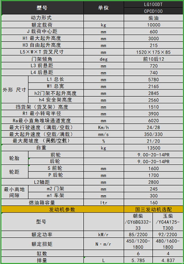 LG100DT 内燃叉车
