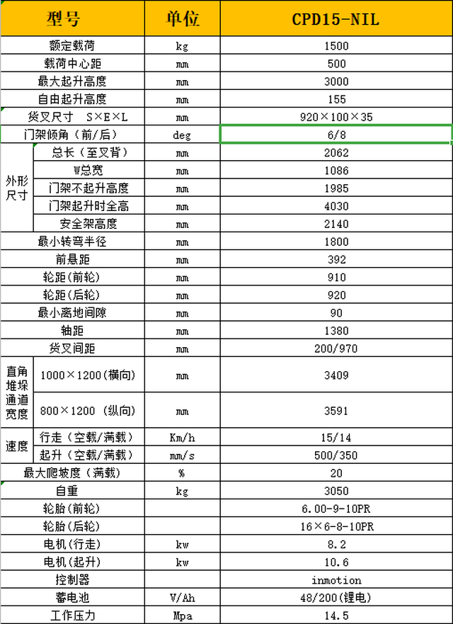 CPD15-NL锂电池叉车