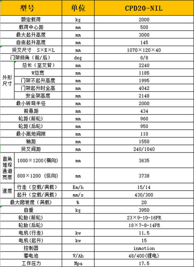 CPD20-NL锂电池叉车