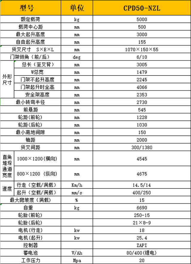 CPD50-NL锂电池叉车