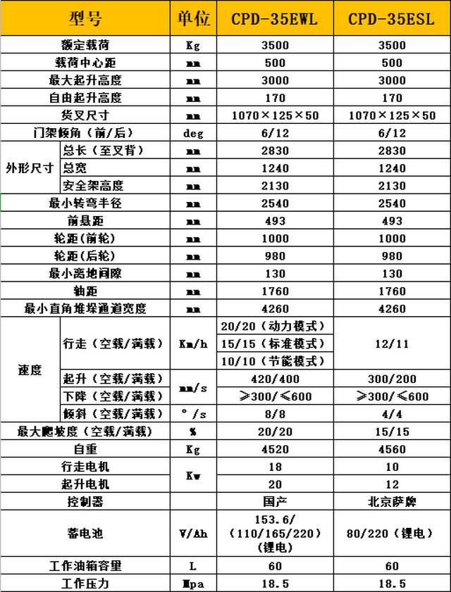 ·性能优异:起升/倾斜、行驶、爬坡性能与内燃车完全相同;